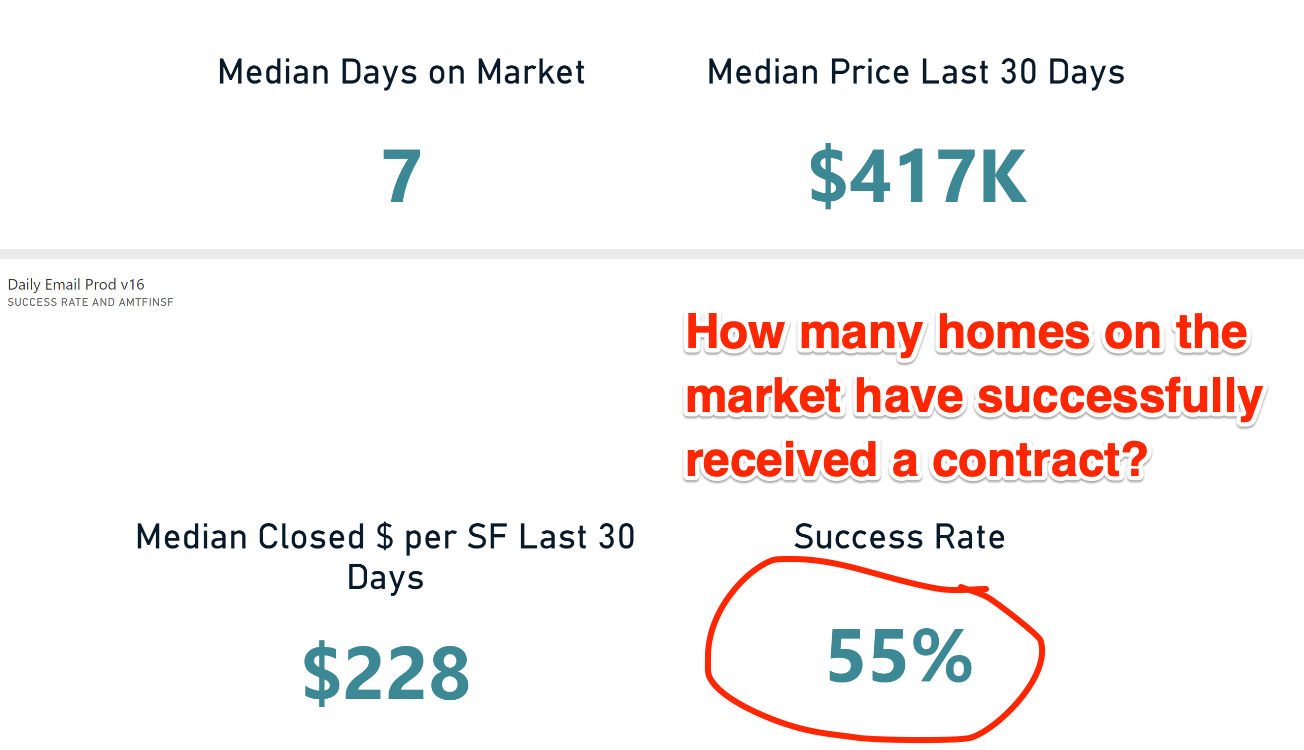 Success Rate measures the ratio of homes that are on the market and homes that are under contract: