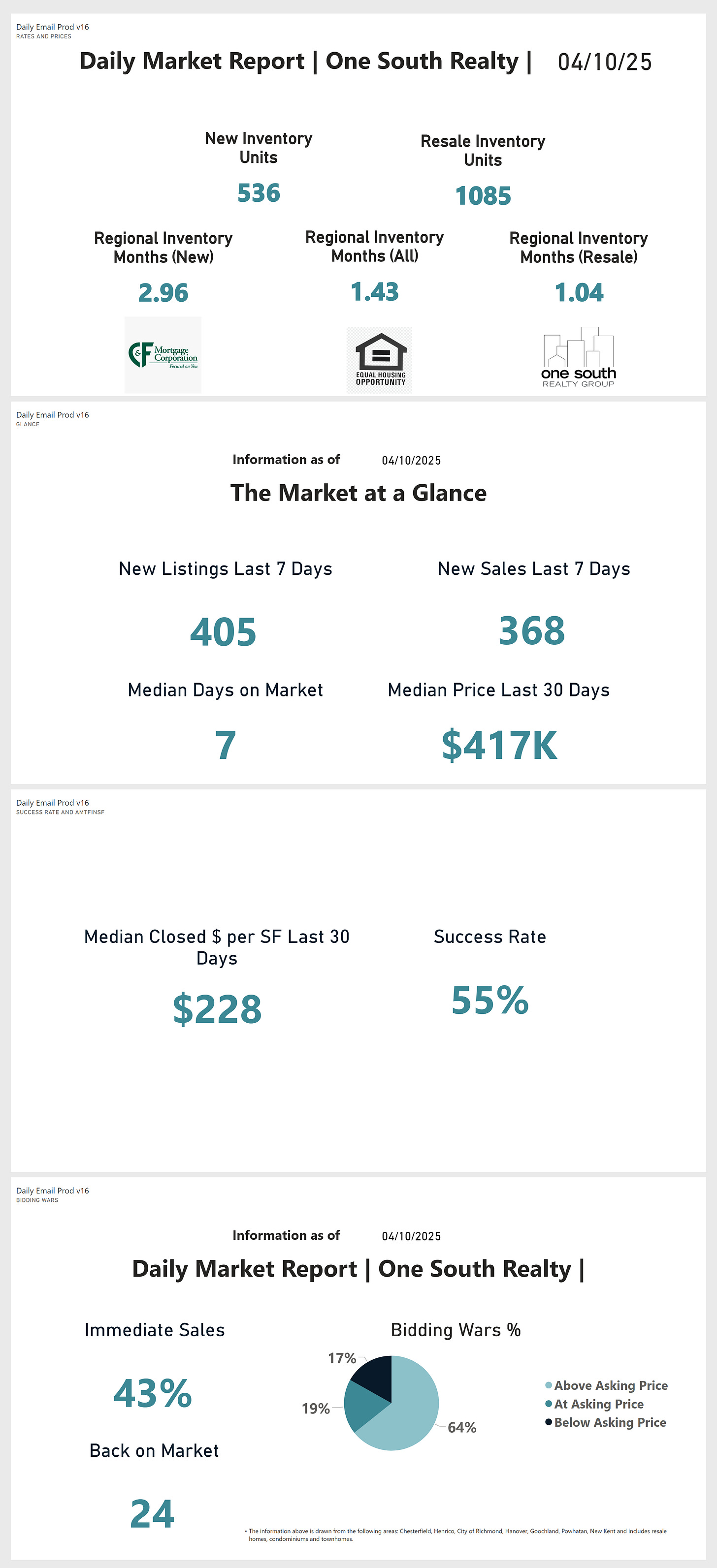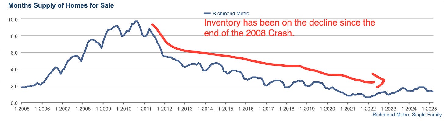 Right now, despite all of the turmoil and upset coming from financial markets and the whiplash nature of governmental trade policy, RVA’s housing market is not seeing anything other than what we have been seeing — buyers outnumber sellers leading to prices pushing upwards.