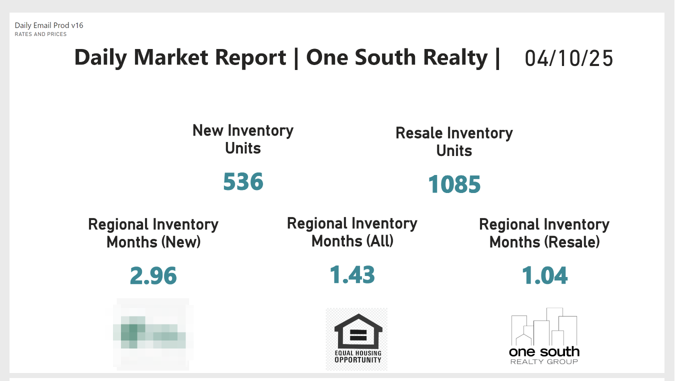 So when you look at the top section of the DMR, you see both an actual count of new homes that are available and resale homes available (which includes townhomes, condos, and single family.)
