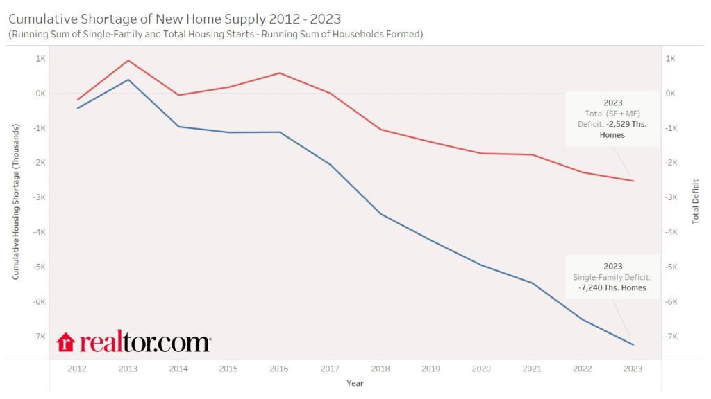 Realtor.com estimates that the US is roughly 2.5M single family housing units undersupplied: